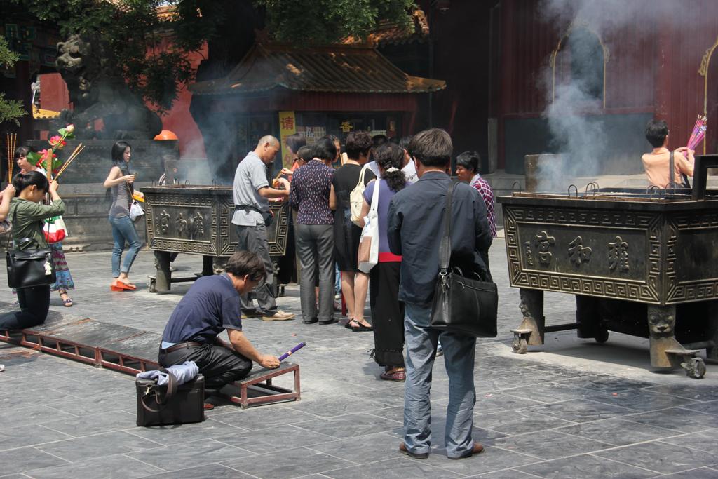 Зашел в аптеку. Глянул вокруг... Мда, все на китайском... даже аптекарши и те китайские... по английский ни шпрехают и уж тем более не знают что такое колдрекс или нурофен. Не стал заморачиваться и пытаться объяснить, что такое температура... Благо вспомнил, что на Ябао Лу видел аптеку. Решил, что пока чувствую себя нормально, могу и прогуляться до нее... благо не очень далеко. Но это позже... а сначала по дороге, относительно по дороге, вырисовывался Lama Temple.
