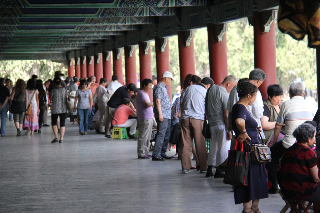 Приехав на вокзал, первое, что я увидел - огромное количество народа. Практически тоже самое творилось на самом вокзале. В холле было порядка 40 касс с таким же количеством людей в каждой кассе... И все написано по-китайски. Попытавшись обратиться к работнице вокзала в ответ получил презрительный взгляд и медленным движением на клочке была написана цифра 16. Расценив это как то, что мне нужно обратиться в кассу №16, я побрел туда. Встав в очередь я начал изучать обстановку и огромное табло с китайскими иероглифами, видимо означающими города прибытия, а так же была показана информация о номере поезда и количестве оставшихся тех или иных мест на несколько дней вперед. Изучив вечернее "меню" стало понятно, что на вечерние поезда на ближайшие 2 дня билетов нет ни на сидячие, ни на стоячие, ни на лежачие места. Да и вообще, номера поездов совсем не соответствуют тому, что написано в интернете на сайте. Так что мысль о выезде за пределы Пекина окончательно умерла... Ну что ж, умерла, так умерла, поехали дальше осматривать достопримечательности.