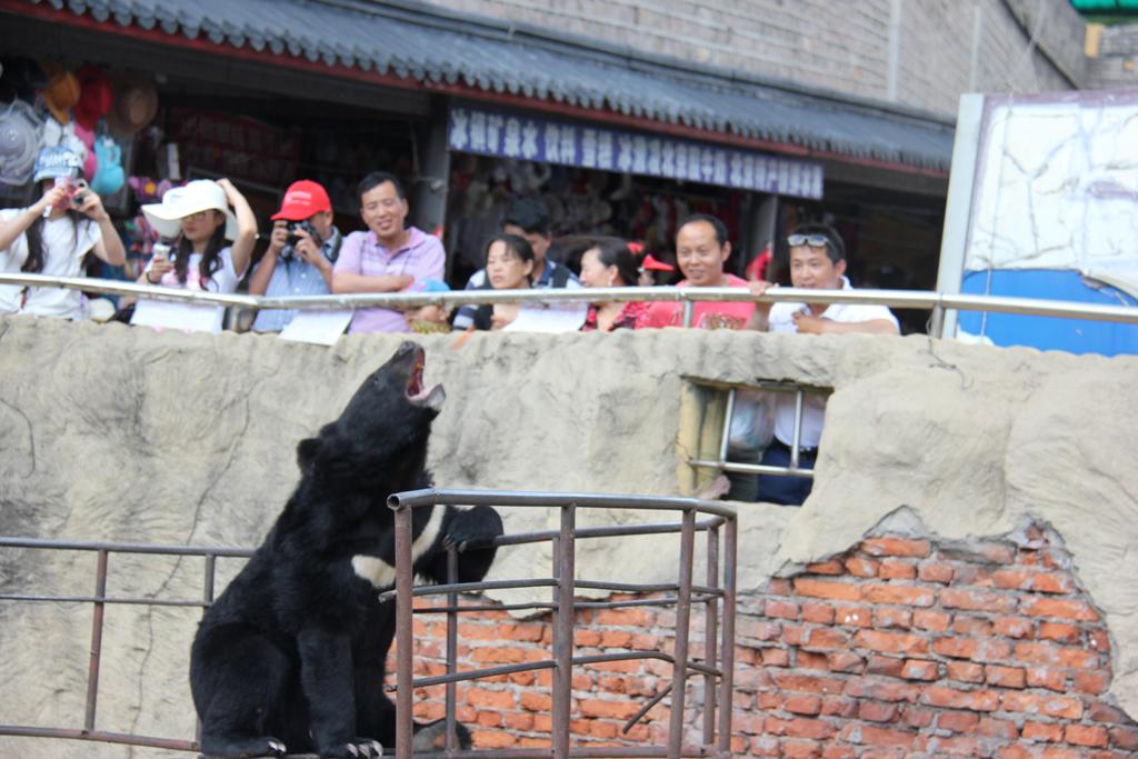 Внизу располагалось некое подобие зоопарка, и всякие сувенирные лавки и закусочные… сил не было ни на что. Только на то, что бы в очередной раз увидеть, как китайцы обдирают народ. Вокруг ограды с медведем прикреплено большое количество тарелок с едой. Подходит турист к ограждению и видит, как кто-то кидает еду медведю, а тот ее ртом ловит. Ну и как всякому нормальному человеку, ему хочется тоже покормить зверя, он берет еду и в момент броска из-под земли вырастает маленький китайчик и начинает практически языками жестов объяснять, что еда вовсе не бесплатная… за все в этой жизни приходится платить… даже если отсутствует ценник…